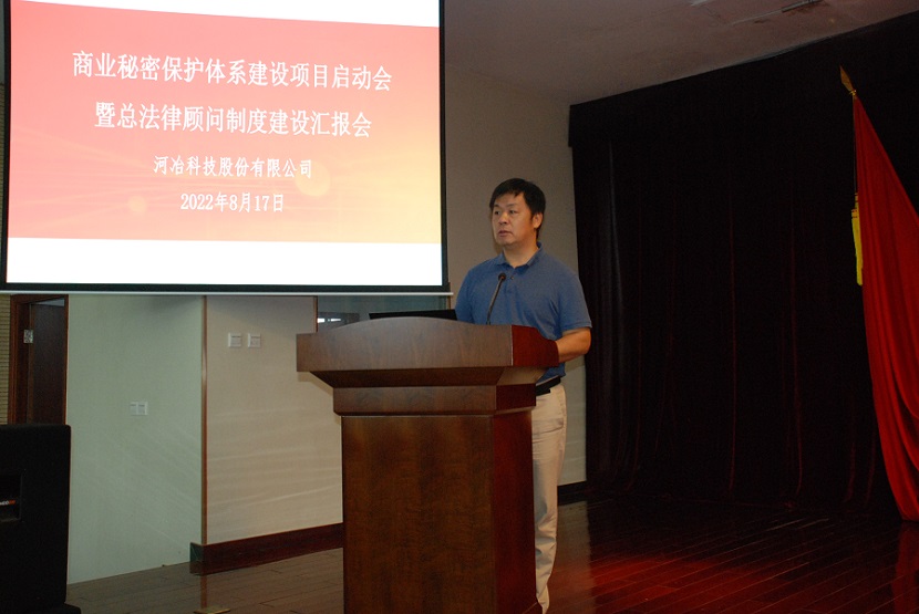 8月17日,河冶科技召開商業(yè)秘密保護(hù)體系建設(shè)項(xiàng)目啟動會暨總法律顧問制度建設(shè)匯報(bào)會在河冶多功能廳召開。安泰科技總法律顧問、商密總代表王勁東,河冶科技總經(jīng)理米永旺,河冶高管團(tuán)隊(duì),安泰科技商密辦公室成員,河冶各部門商密代表及商密管理員參會。會議由河冶科技總法律顧問劉鵬杰主持。